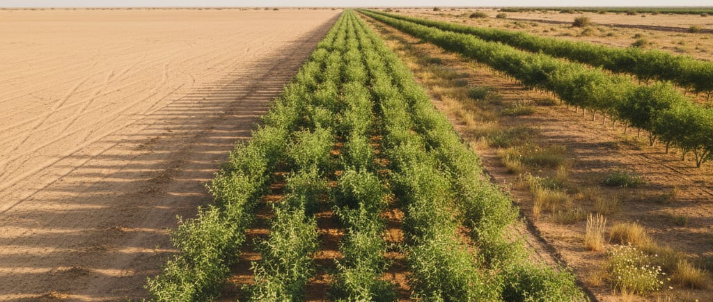 This green line is the nurturing environment, the protected zone where the next, more complex stages of afforestation and agriculture can begin. It is the first large-scale, self-reinforcing biological system in our project, where the outputs of the system (humidity, shade, organic matter) become beneficial inputs that support its own growth and the establishment of other species.