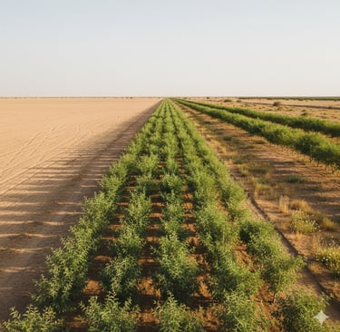 Balanites aegyptiaca (Desert Date): An exceptionally hardy, slow-growing but long-lived tree. It is extremely drought- and salt-tolerant and produces an oil-rich fruit, providing a potential early-stage resource. Its robustness makes it an ideal candidate for the most exposed parts of the shelterbelt.